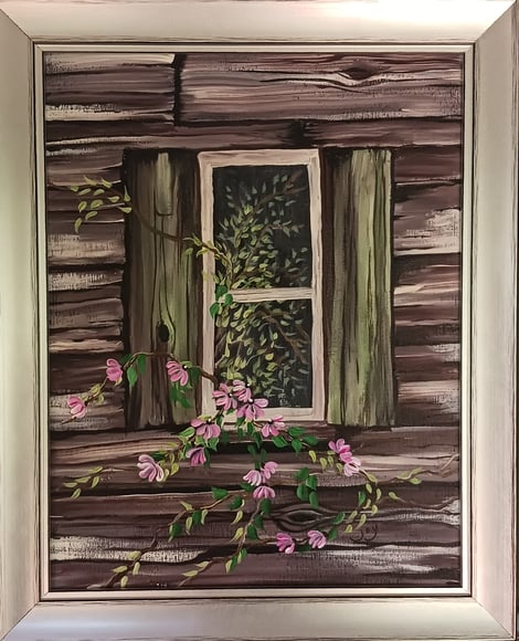 I so loved painting this Old Farm Shed because it reminds of childhood on the farm! It’s painted in acrylics and measures 14 x 20.”